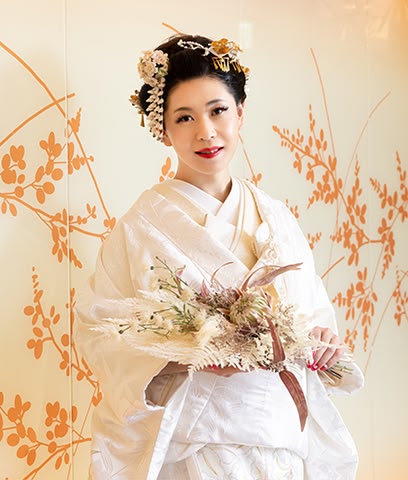 婚礼和装は通常はオプションとなるランクアップ衣装。1点ものの刺繍や手描きの入った、艶やかで特別な婚礼和装(色打掛や白無垢)を各種ご用意。お好みの2着をご着用いただけます。