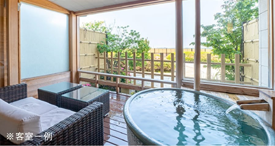 お部屋に備え付けの個室露天風呂があるので、誰にも邪魔されずに温泉を存分にお楽しみいただけます。存分にゆったりお寛ぎください。
